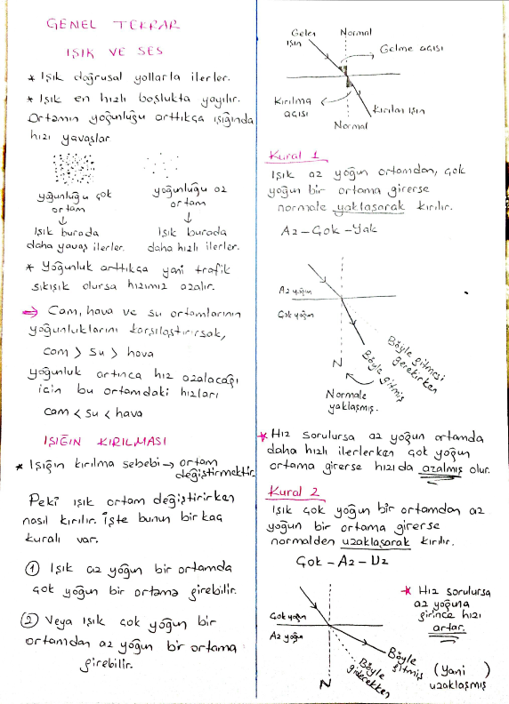8. Sınıf Işık ve Ses Ünitesi Konu Özeti