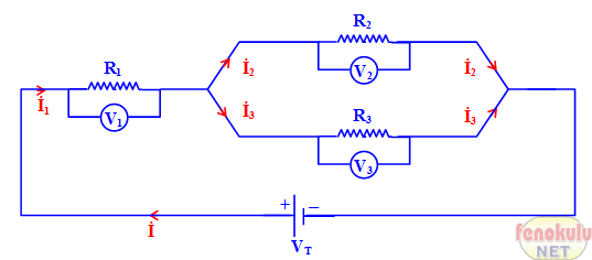 ▪ R2 ve R3 dirençleri paralel bağlı, R1 direnci bunlara seri bağlıdır.