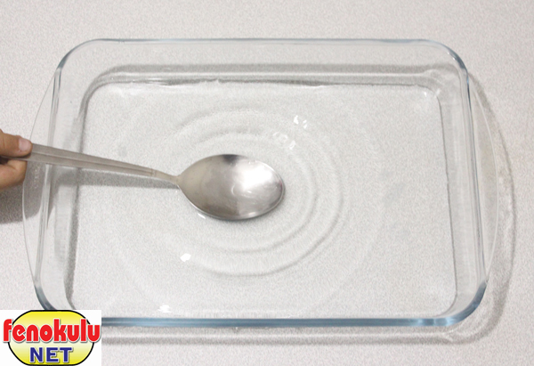 *Bir kaşık ile su yüzeyine dokunun. Her yöne dalgalar oluşturun. Su durgunlaştıkça tekrar dalga oluşturabilirsiniz. Havadaki ses dalgaları da bu şekilde yayılır.