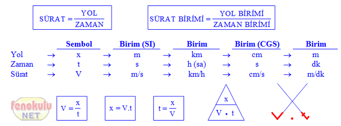 ▪ Ölçülen her büyüklüğün birimi vardır. Yol, zaman ve sürat ölçülebilen büyüklükler olduğu için birimleri vardır.