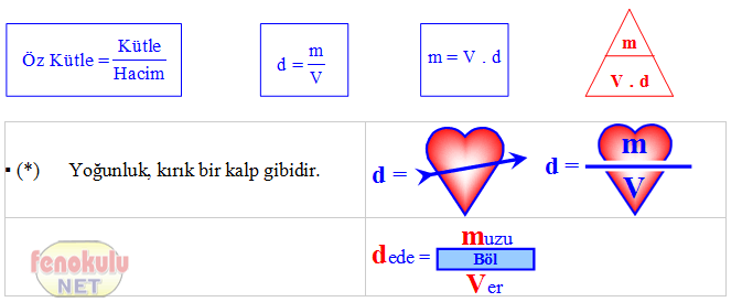 Bir maddenin birim hacim başına düşen kütle miktarına yoğunluk (öz kütle) denir. Yoğunluk d ile gösterilir. Her maddenin yoğunluğu farklıdır ve bu nedenle yoğunluk maddeler için ayırt edici özelliktir.