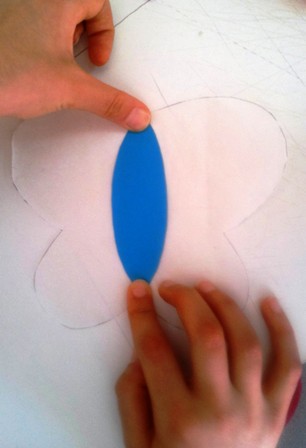 4. Aşama:Kelebeğin arka tarafına pipet yapılarak çomak kukla şekli elde edilir.
