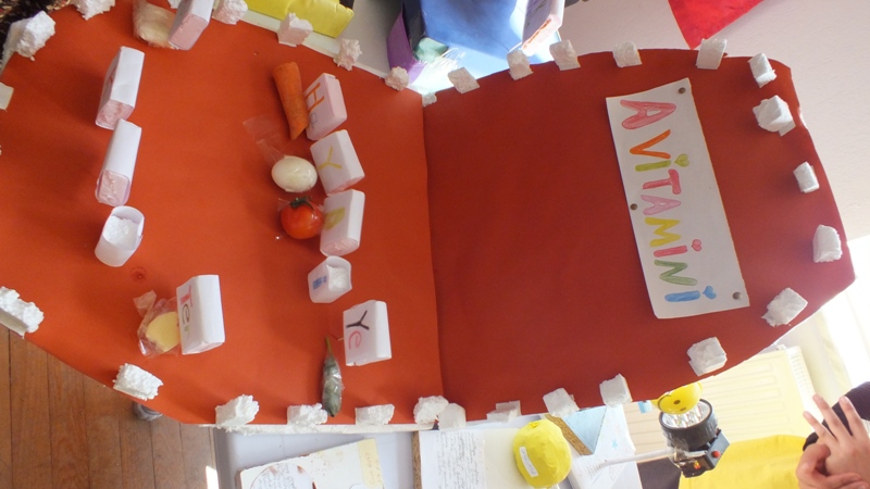 A vitamini : Bek Beter Haydi Ye!!!! Ağız modeli içerisine yukarıdaki cümlenin hecelerini oluşturan besinler konularak yapıldı